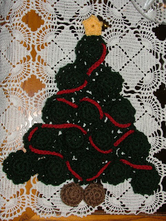 Sew the yarn through the last round 5, instert your bottlecap or polyesterfiberfill, then pull the stitches shut. You will want to weave your tail to the edge of the motif so you can attach it to the tree and to the other part of the trunk.